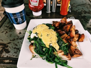Här är det regnigt igen, aldrig sett LA så här grönt som det är just nu. Otrolig fint men börjar tröttna på det dåliga vädret nu. Så grönt o fint det är så har jag aldrig känt mig blekare, usch. Vill få lite sol nu haha. Denna veckan har varit ganska så vanlig. Jobbat måndag- torsdag och skola i tisdags. Idag lyxade jag till det med lite brunch på Larchmont Bungalow. Super mums!! Åt en vegetarisk Egg’s Benedict med zucchini och tomat och smarrig spenat. Sen traskade jag runt lite i Larchmont Village tills det började ösregna. Jag gick in i en super cool hatt affär och dom som känner mig väl vet att har en svaghet för hattar. Letade som en tok efter exempelvis en baker boy hatt i ca 1-2 år tills min kära syster och hennes man gav mig en i julklapp, alltså lyckan när jag såg vad det va i paketet är ju obeskrivlig! Men hur som helst, nu är jag hemma i värmen igen. Tog betydligt längre tid för när det regnar blir den normalt jobbiga trafiken här i LA en mardröm! En som är född i regn höll jag på o säga nu men vi svenskar har ju i alla fall bra erfarenhet av att köra i alla möjliga väder. Det är inte så att det blir någon fara eller så utan mer bara lite extra köer och det tar längre tid att ta sig någonstans. Men nu är jag som sagt hemma och redo för en skön helg! Morsning korsning, puss o kram!